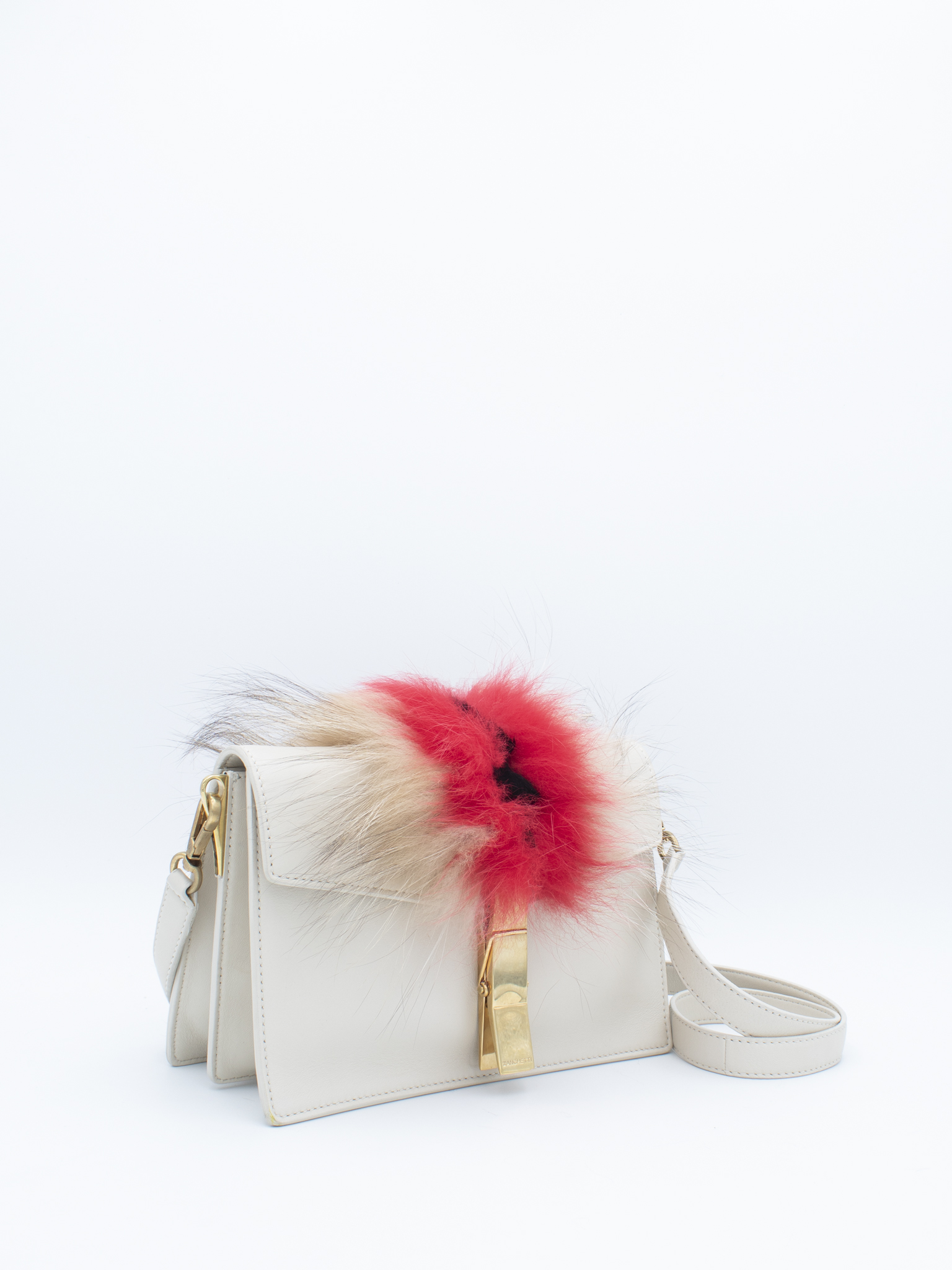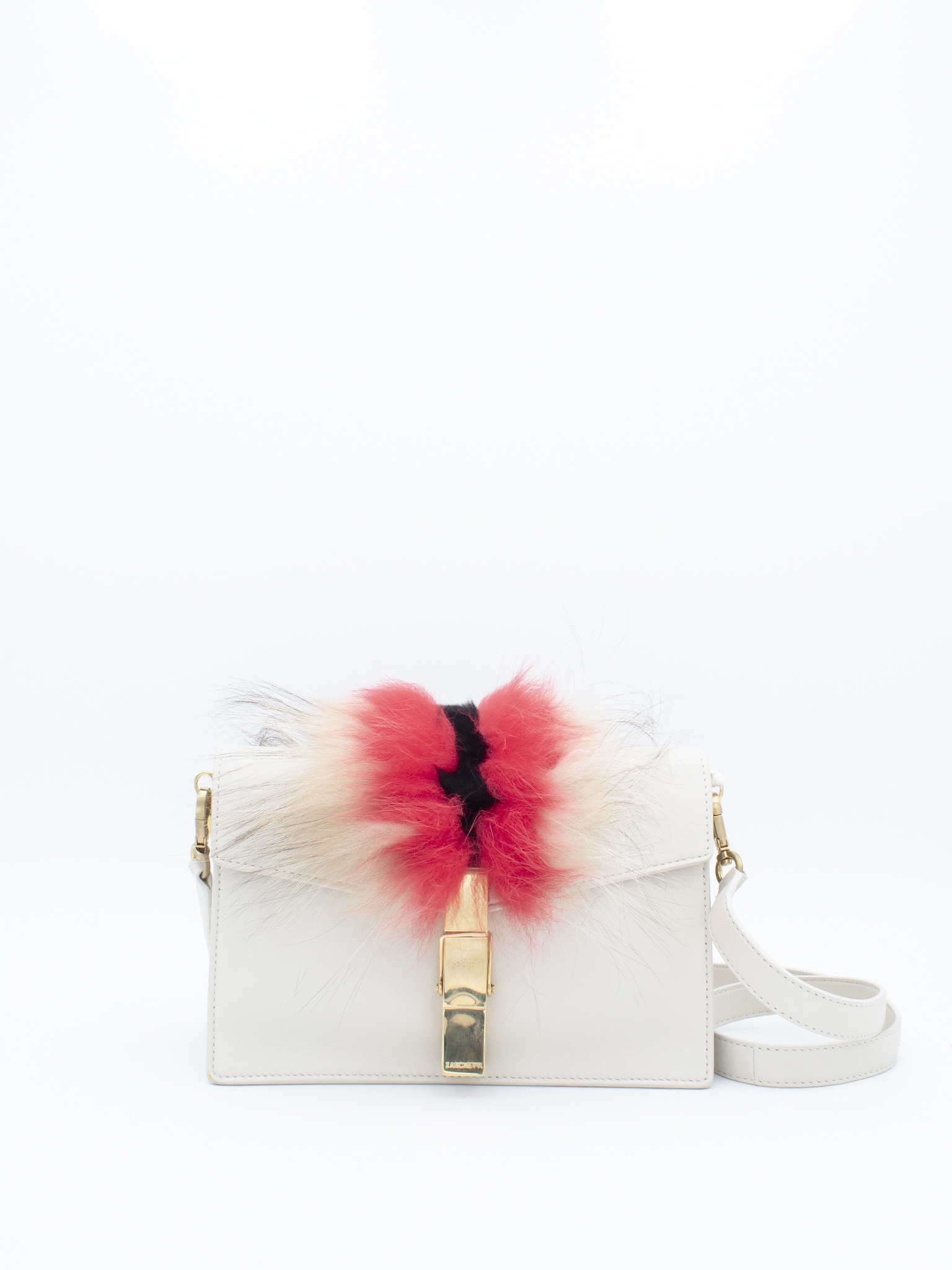 Borsa a tracolla modelli Clip in vitello colore bianco e inserto in volpe
