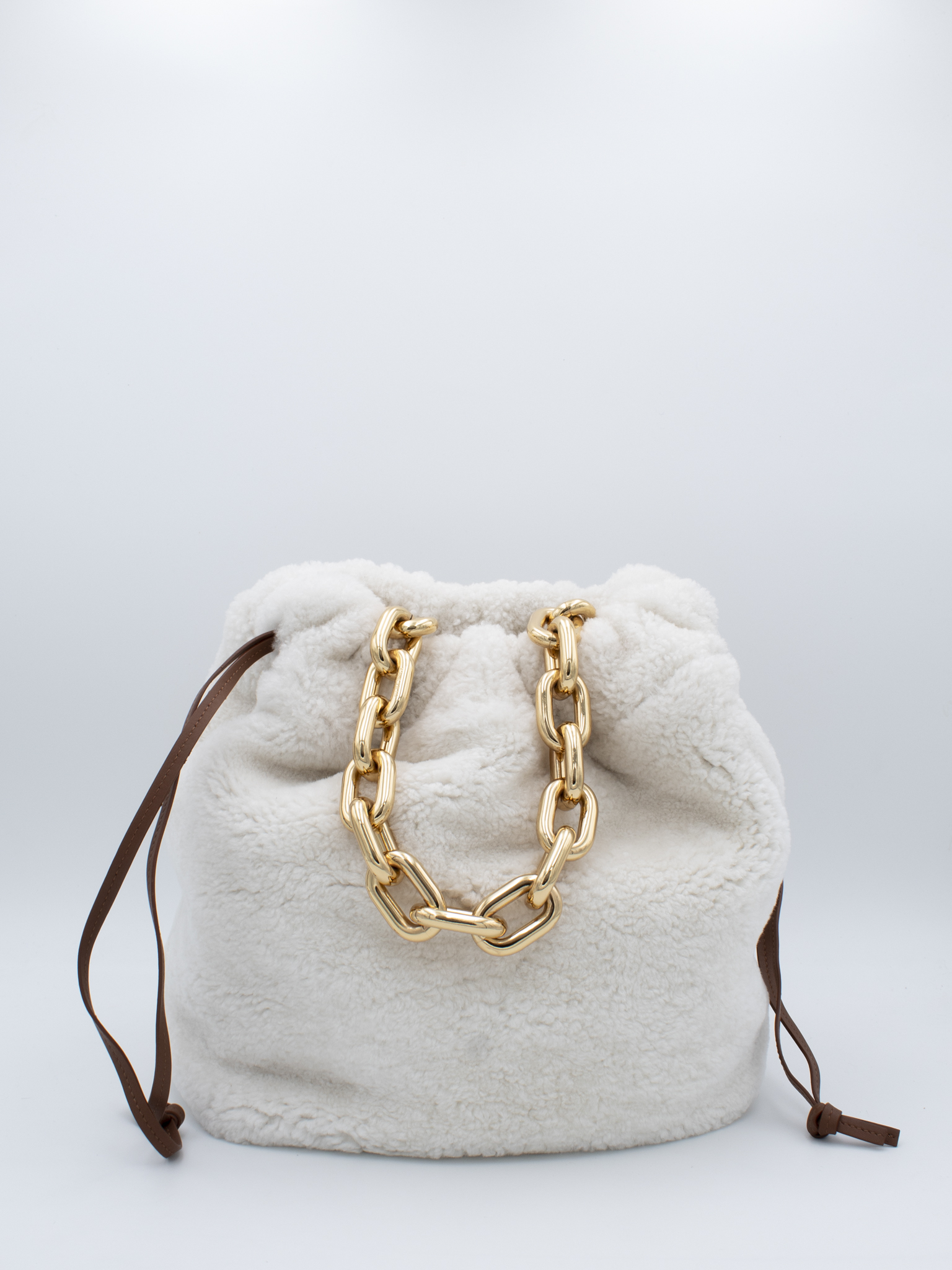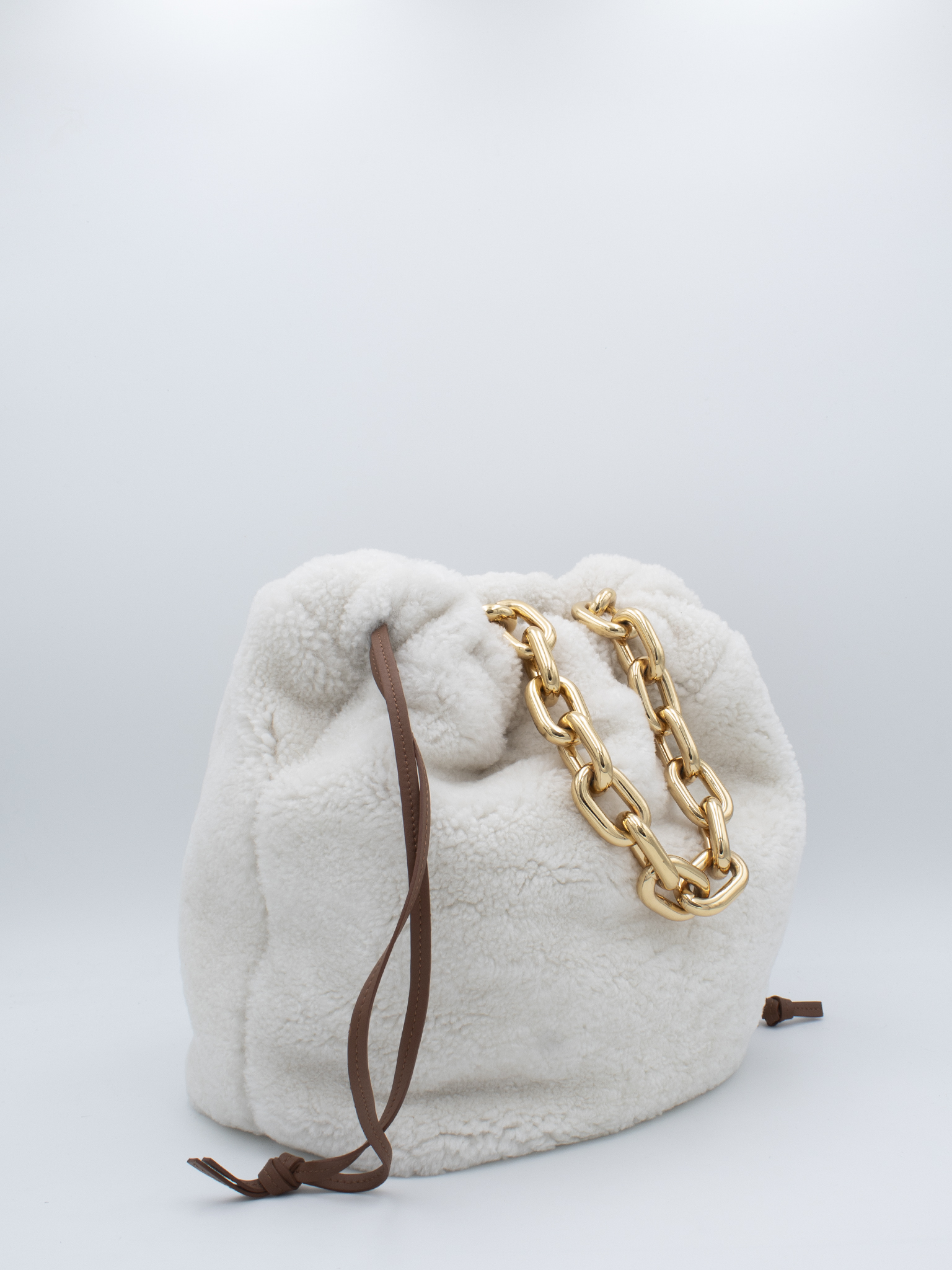 Secchiello a tracolla di medie dimensioni in montone colore bianco