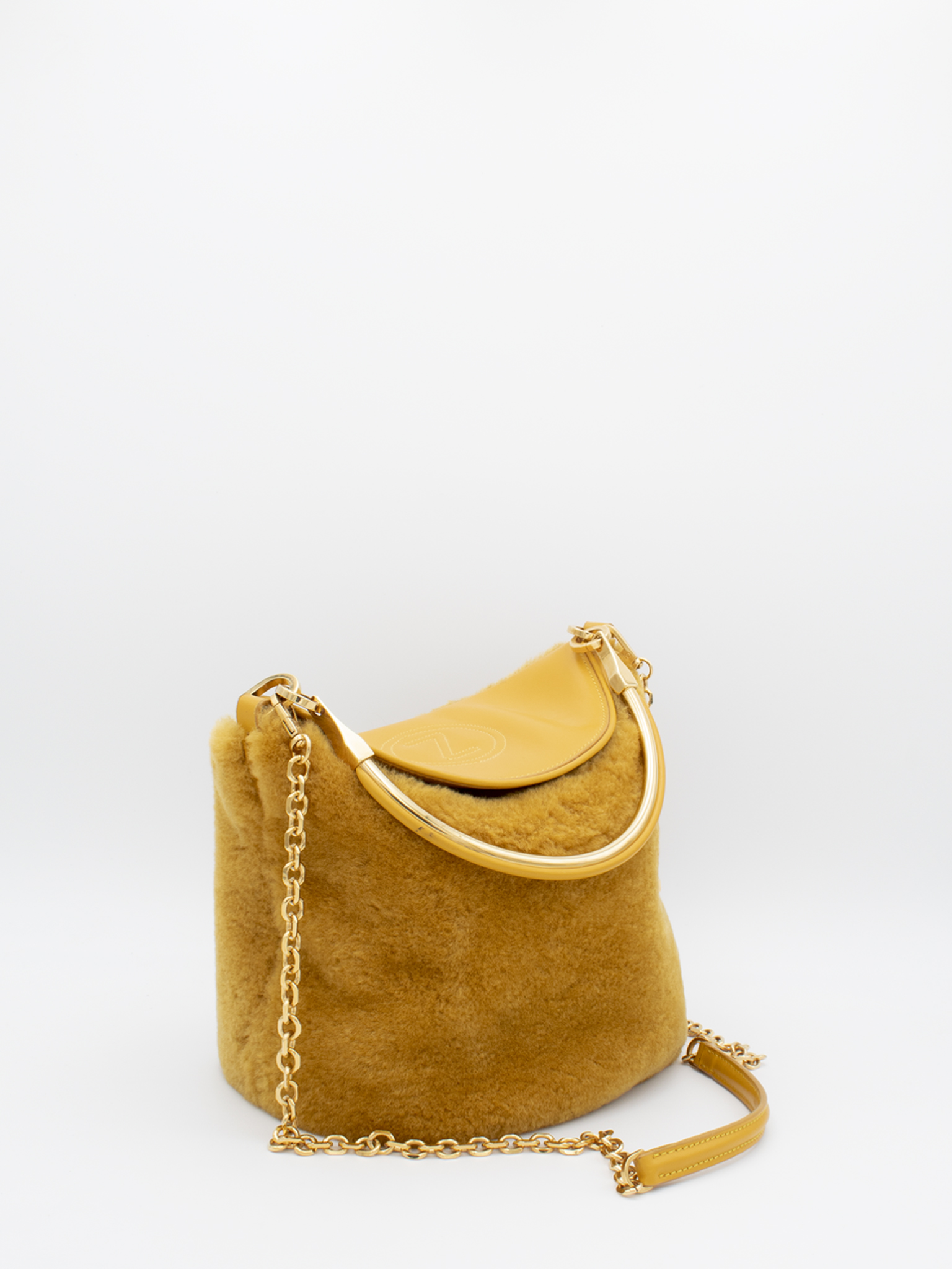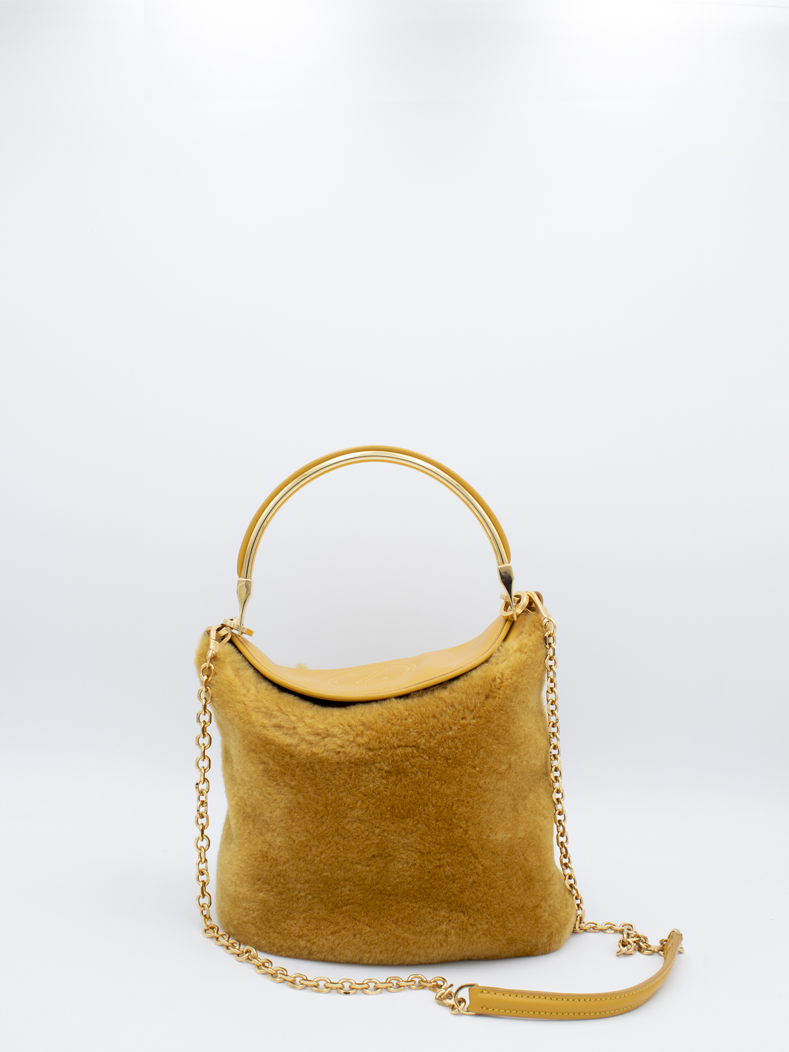Borsa a secchiello modello Orazio in pelle di montone colore ocra