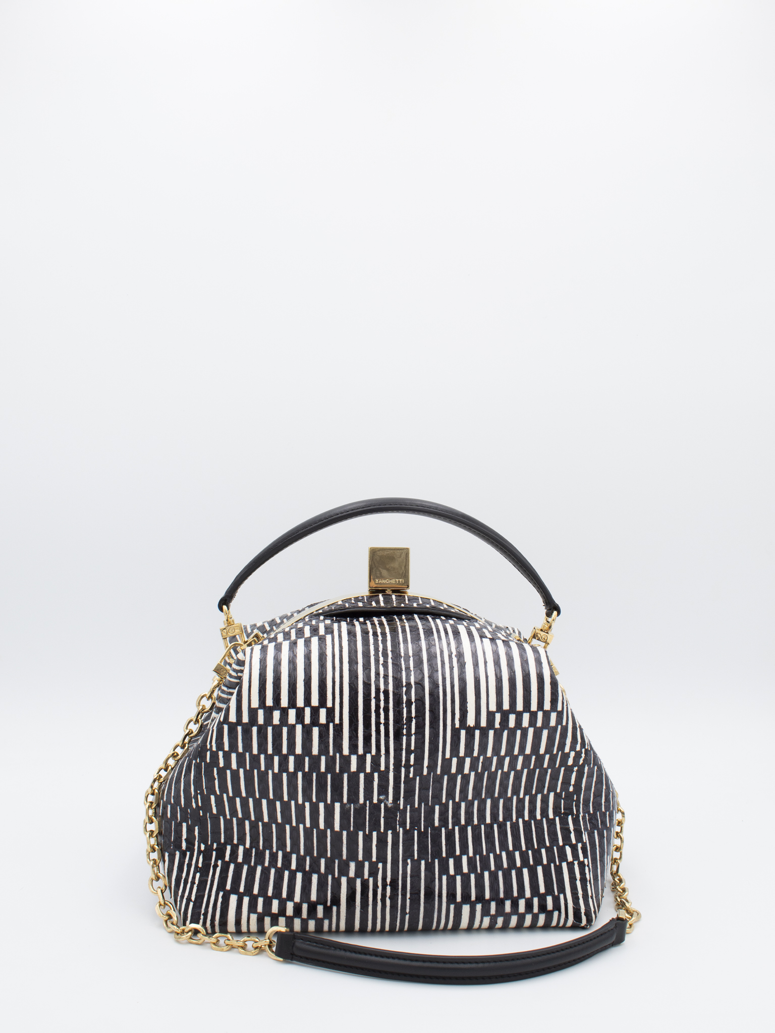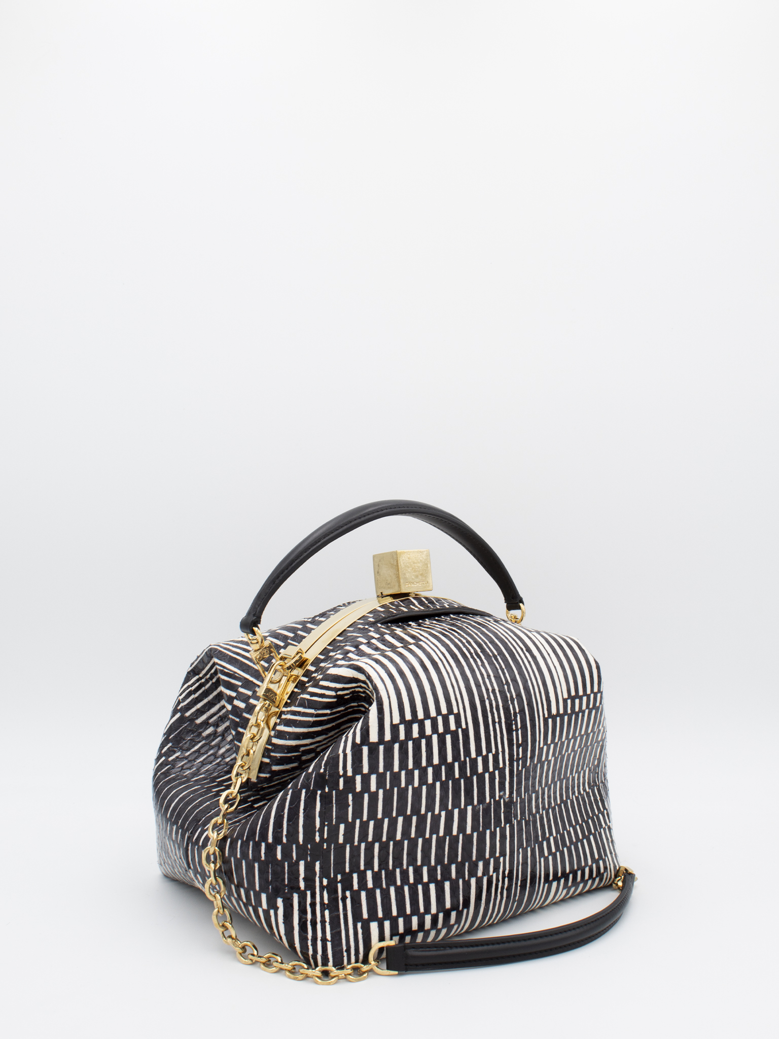 Borsa a mano e spalla modello Era in pelle di biscia d’acqua a righe bianco e nero