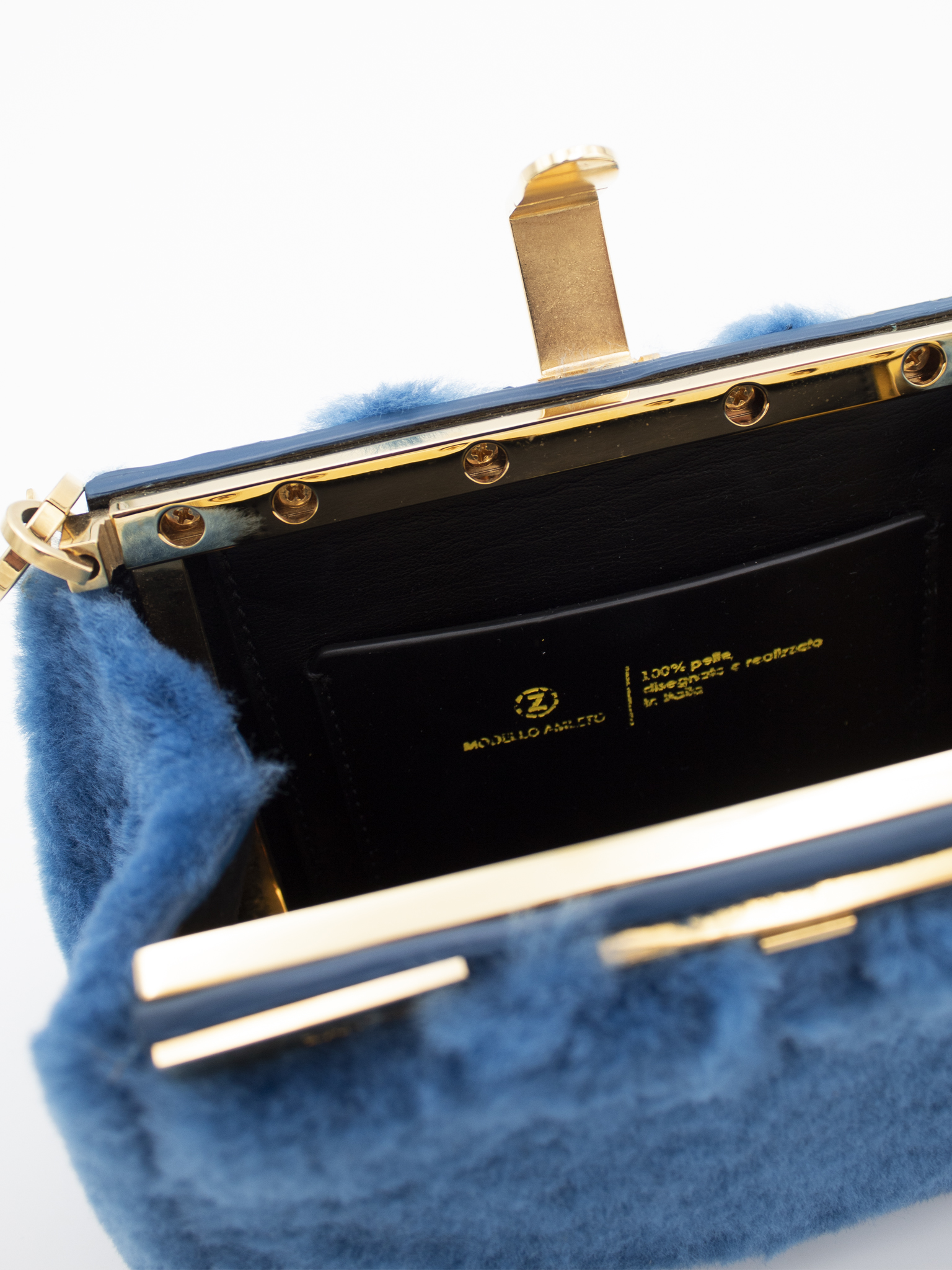Modello Orazio 15; borsa a mano e tracolla in montone colore blu