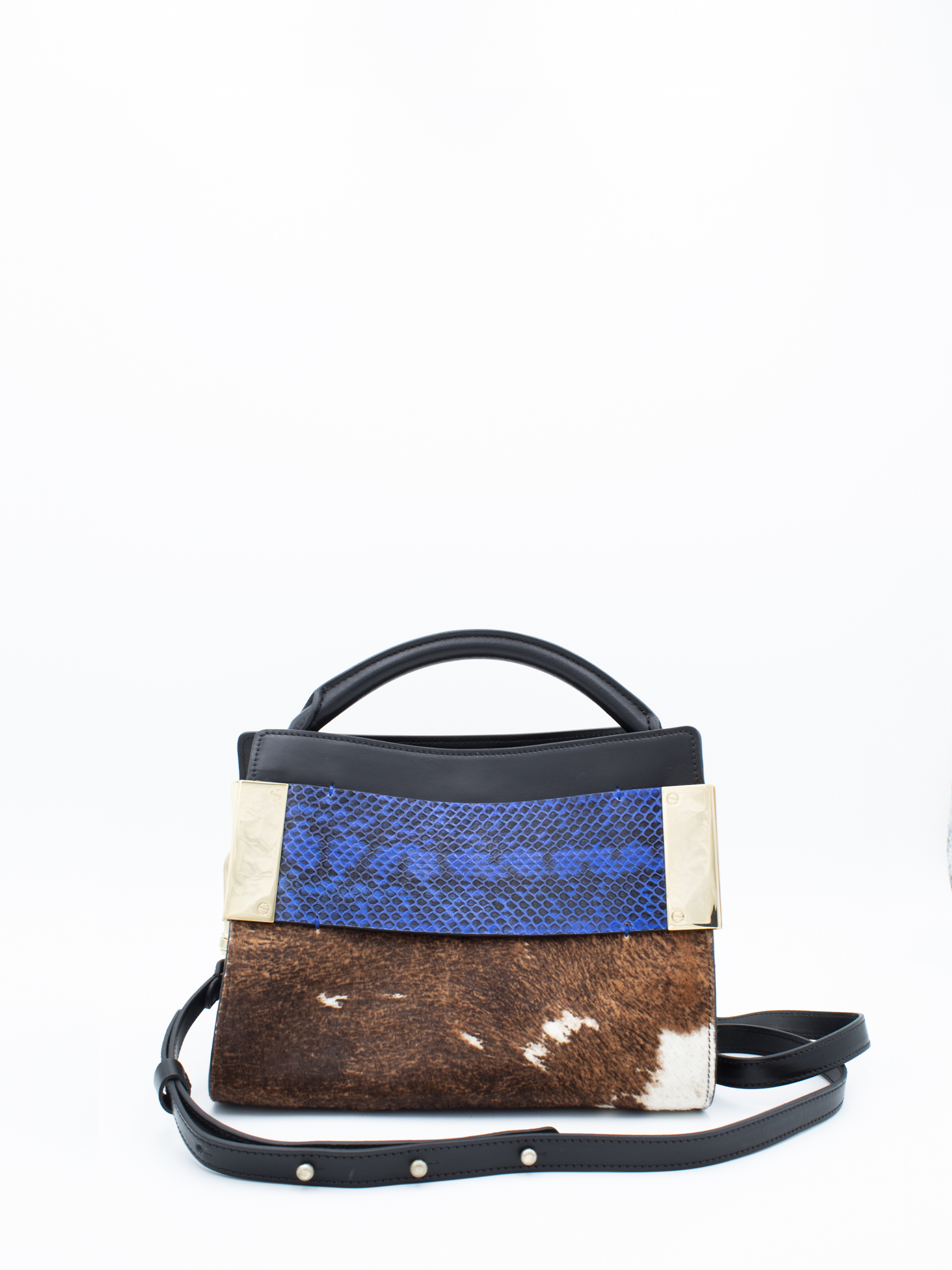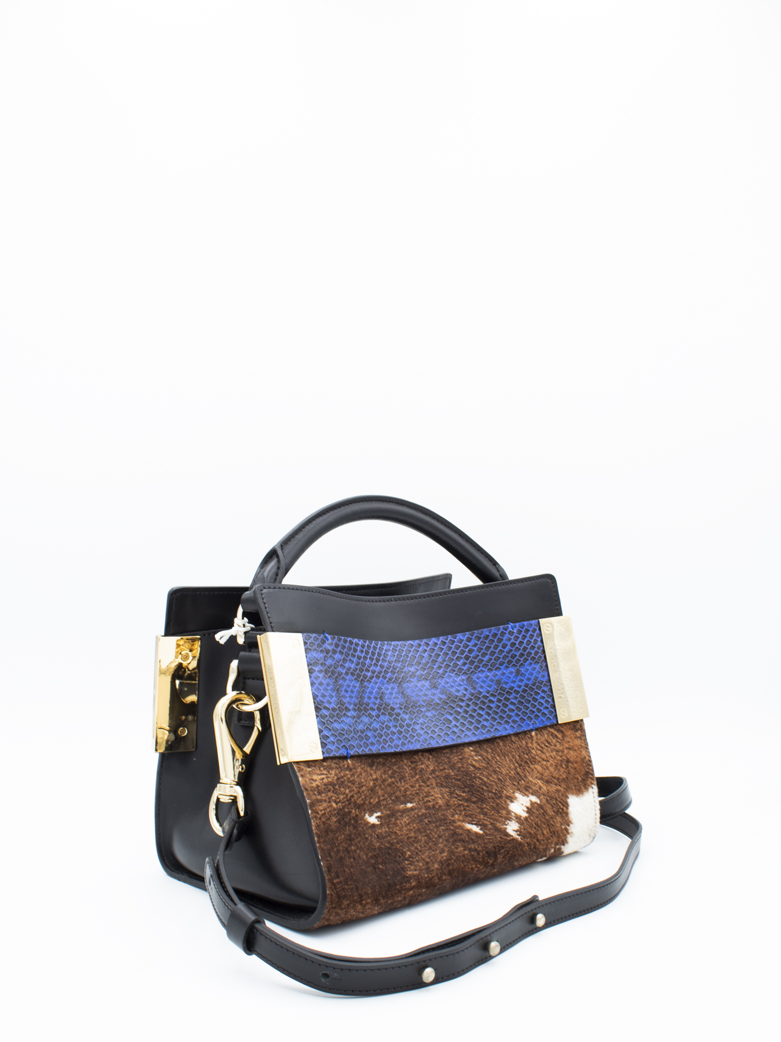 Modello Z02; borsa a mano e tracolla di medie dimensioni in vitello e cavallino muccato